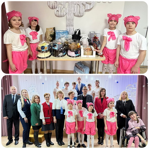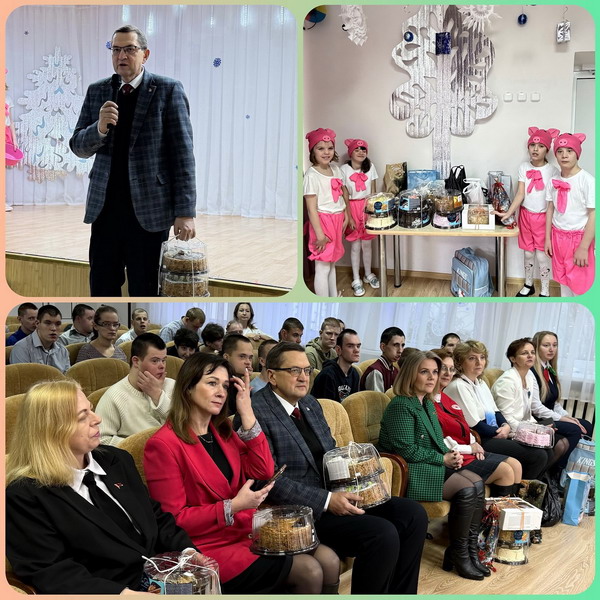 Гости поздравили ребят с наступающими праздниками и подарили сладкие подарки, а также канцелярские товары для наших ребят.